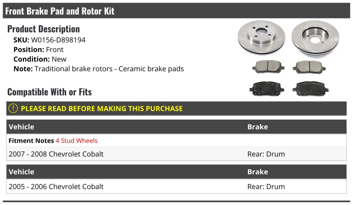 - Front Ceramic Brake Pads And Rotor Kit Compatible With 2005-2008 Chevy Cobalt