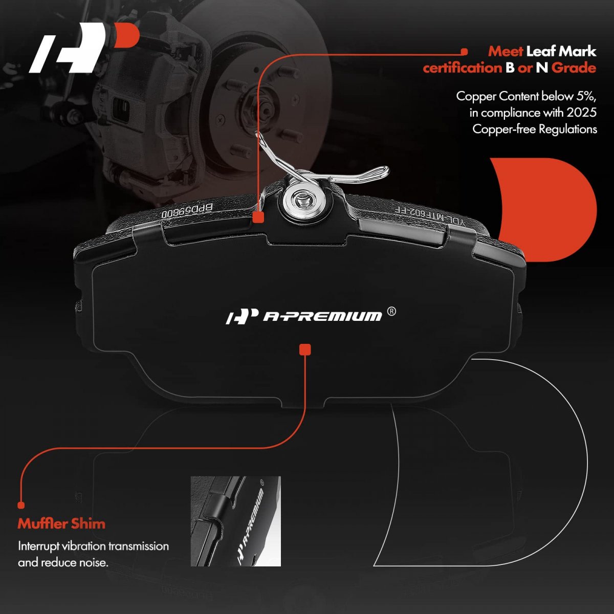 [Perfect Fitment]: Compatible with Ford Taurus 1994-1999 (SHO, Except Police Package), Taurus 2001-2002 (Except Police Package), Taurus 2003-2007, Thunderbird 1996-1997 (Models with Sport Suspension 294mm (11.57") Diameter Front Rotors); Compatible with Lincoln Continental 1995-2002, Mark VIII 1993-1998; Compatible with Mercury Cougar 1996-1997 (Models with Sport Suspension 294mm (11.57") Diameter Rotors), Sable 2001-2005---Front Left and Right, Driver and Passenger Side. [Reference Number]: The A-Premium Brake Pad's reference number: MGD598CH, 17D598CH, 17D598CHF1, 17598, 17-598, FVC598, SBC598, 1310059801, 1310-0598-01, CFC598, QC598, 30105980, 301.05980, 10505980, 105.05980, 105-05980, 1600059801, 1552059801, 1552-0598-01, P-598. Before placing an order, verify that the part is compatible with your vehicle using the compatibility system.. [Specification]: Brake pads are manufactured in a clean room using MTF602 carbon ceramic formula, which excels in low dust and noise reduction, and meets Leaf Mark certification with a copper content of less than 5%. 72-hour salt spray test, which can excel in meeting the challenges of extreme conditions.. [Package Details]: 4x Disc Ceramic Brake Pads + Brake Lubricant (High-temperature Grease) + Installation Hardware. Complete kit purchase for more time-saving and peace of mind..Other fine products