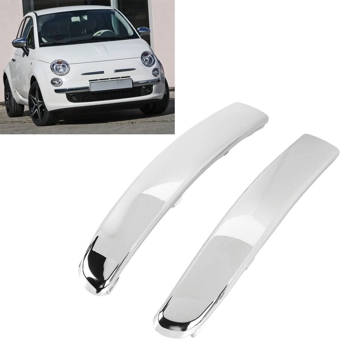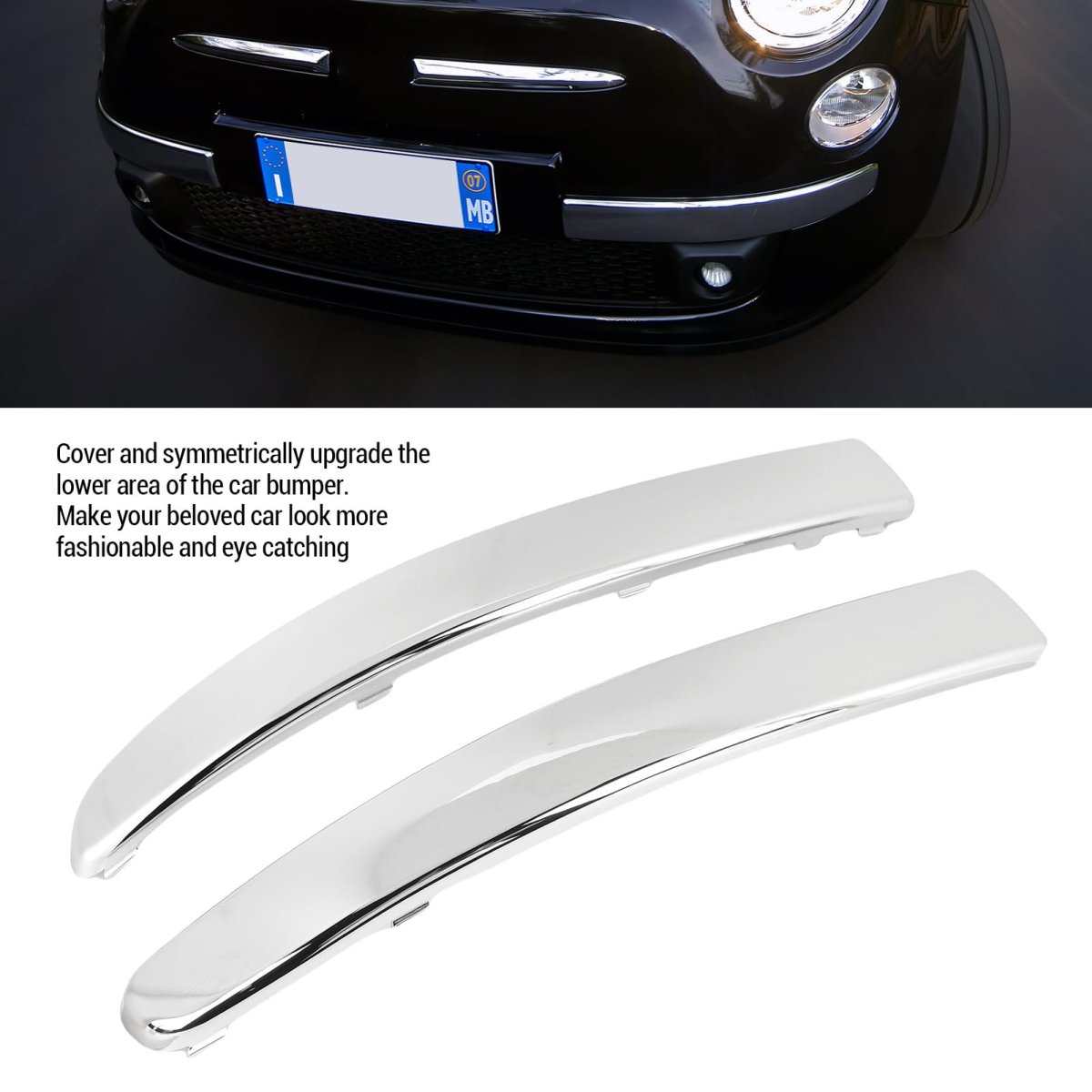 [Stylish Upgrade] Adds a luxurious and stylish look to your car, enhancing its beauty and replacing old or damaged parts to restore your vehicle to a new state.. [Simple Installation] Easy to install chrome front bumper trims without the need for complex tools, saving you time and energy during the installation process.. [Durable Chrome Trims] Resistancet to harsh weather conditions, ensuring long-lasting beauty for your car.. [Easy Part Identification] The reference part numbers 735455057 and 735455056 make it easy to ensure compatibility with your vehicle before purchase.. [Material] Constructed from high-grade abs material for durability and resistancet to wear and weather damage..Other fine products