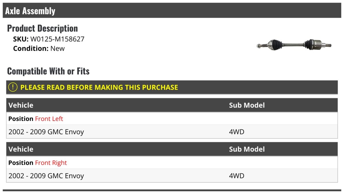 - Front Cv Axle Assembly For 2002-2009 Gmc Envoy 4wd