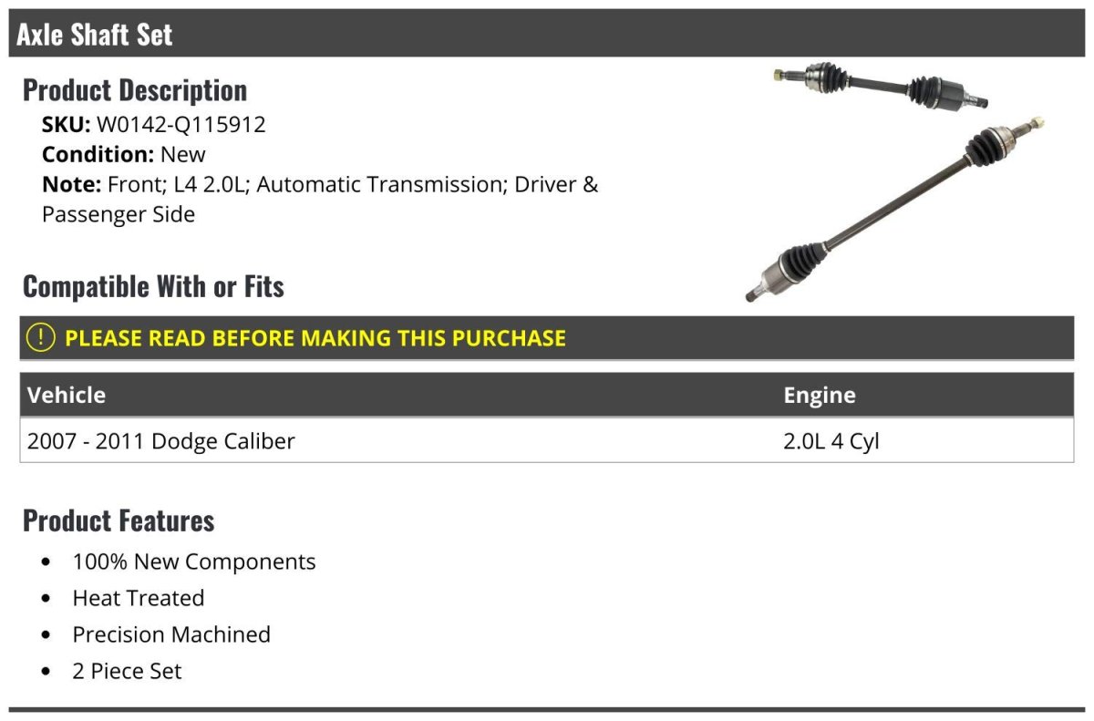 - Front Cv Axle Shaft Set For 2007-2011 Dodge Caliber 2 0l 4-cylinder With Automatic Transmission