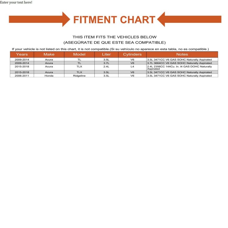 Fits 3.5L 3471CC V6 GAS SOHC Naturally Aspirated. Designed with the latest software and manufactured with modern toolingDesigned with the latest software and manufactured with modern tooling. Direct fit replacement. Installs the same as factory unit. Same dimensions as OE part.Other fine products