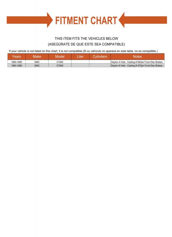 Fitment Notes: Dayton 6 Hole - Casting # 472with Front Disc BrakesDayton 4 Hole - Casting # 563Position Location: Front. Designed with the latest software and manufactured with modern tooling. Direct fit replacement. Installs the same as factory unit. Same dimensions as OE part.Other fine products
