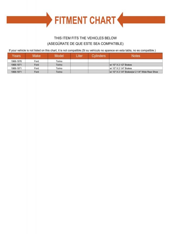 Fitment Notes: with 10 inch X 2 1/2 inch Brakeswith 10 inch X 2 1/4 inch Brakeswith 2 1/4 inch Wide Rear ShoePosition Location: Front. Designed with the latest software and manufactured with modern tooling. Direct fit replacement. Installs the same as factory unit. Same dimensions as OE part.Other fine products