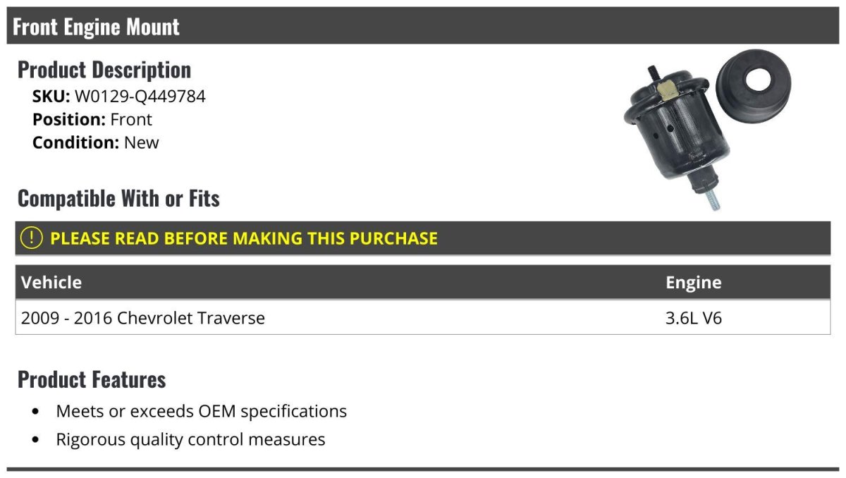 - Front Engine Mount For 2009-2016 Chevy Traverse 3 6l V6