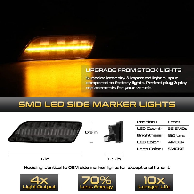 Front Amber Led Side Marker Reflector Lamps For 2003-2007 Cadillac Cts V Smoked Tinted Lens Left Driver Right Passenger Pair