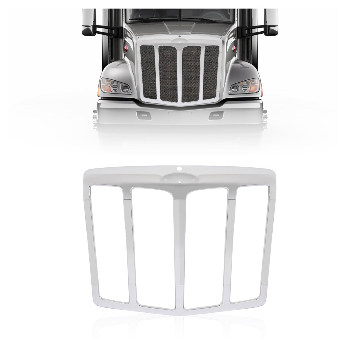 - Front Grille For 2013-2021 Peterbilt 579 Bumper Upper Radiator Hood Mounted Grill Replacement L296157100 W O Bug Screen Chrome