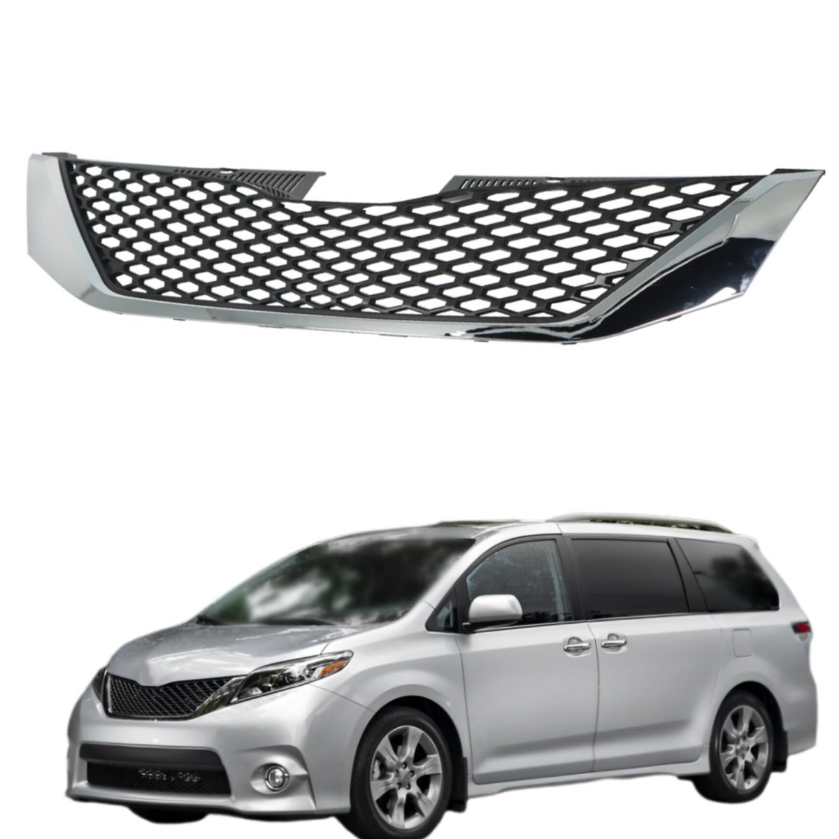 - Front Grille Upper Black And Chrome Mesh Style Replacement For Toyota Sienna 2011-2017