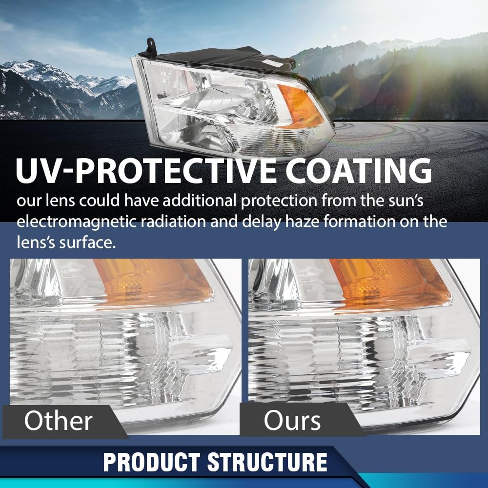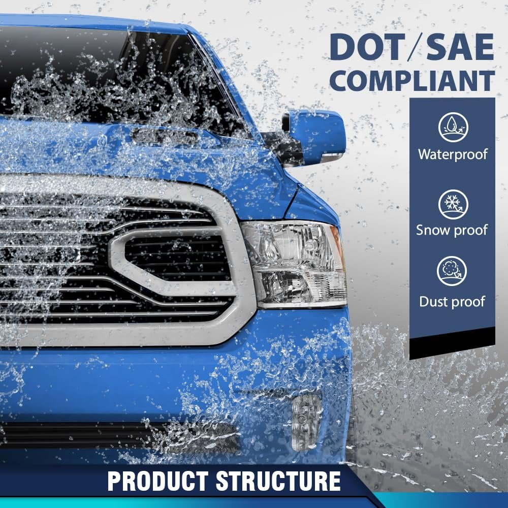 Vehicle Compatibility - (Only for Quad Models) Compatible with Dodge Ram 1500 2500 3500 2009-2018 Factory Style. High Beam: 9005; Low Beam: H11 (Bulbs included). OE Standard - Meets the Original Equipment (OE) standards, ensuring replacement fit just like the original.. Material - Polycarbonate lens is UV resistant and shockproof to prevent yellowing or cracking. hard housing can better withstand the impact of debris and violent vibration for the headlights.. High Brightness - Higher luminous efficiency and lower power consumption can release more luminous flux. It provides better field of view and visibility compared to other headlights, with longer and wider lighting distances.. Installation - No modification required. Professional installation is highly recommended..Other fine products