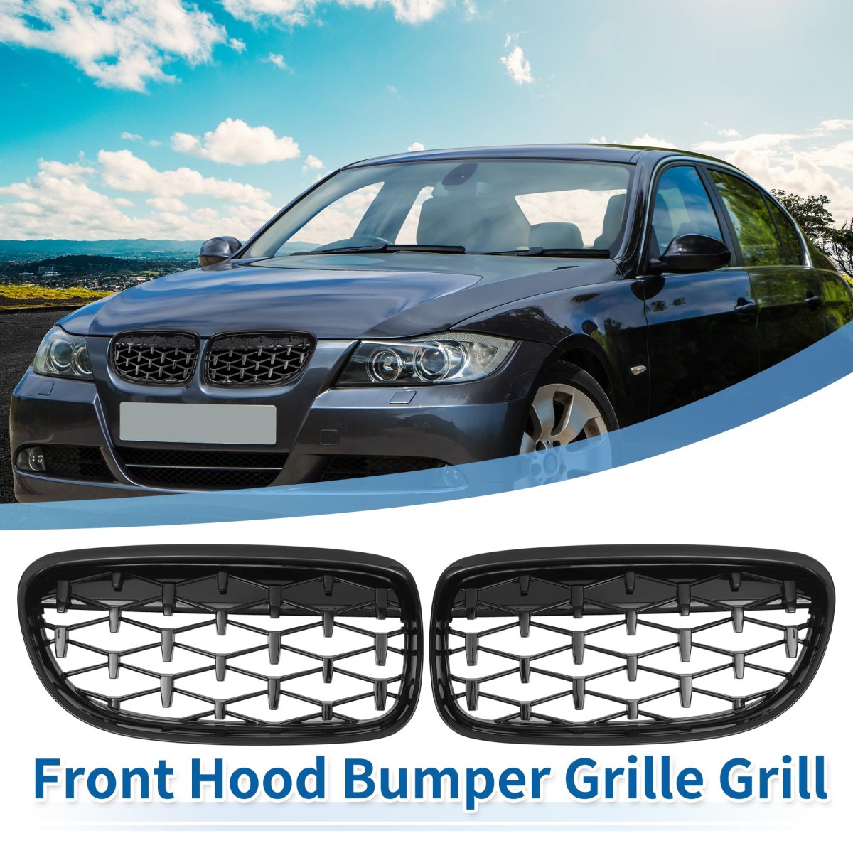Fitment: The Front Upper Hood Bumper Grille Grill is for BMW E90 2009-2012, for BMW 328i 2009-2011 Base 3.0L L6 - Gas, for BMW 328i 2012 Base 2.0L L4 - Gas, 3.0L L6 - Gas, for BMW 328i xDrive 2009-2012 Base 3.0L L6 - Gas, for BMW 335d 2009-2011 Base 3.0L L6 - Diesel, for BMW 335i 2009-2011 Base 3.0L L6 - Gas, for BMW 335i xDrive 2009-2011 Base 3.0L L6 - Gas. OE Number:51137201969/51137201970. Function: The Grille made in Durable ABS which made it light and stable, Overall durable construction can withstand heat generated by engine and sun exposure.. Advantage: Provides better airflow to the radiator to help the cooling process better. Made of reliable quality ABS material. Will not affect the shutters behind the grille, brings an ultimate sportier look to your vehicle.. What in the Package: Package Comes with 1 Pair Front Hood Bumper Grille Grill.Other fine products