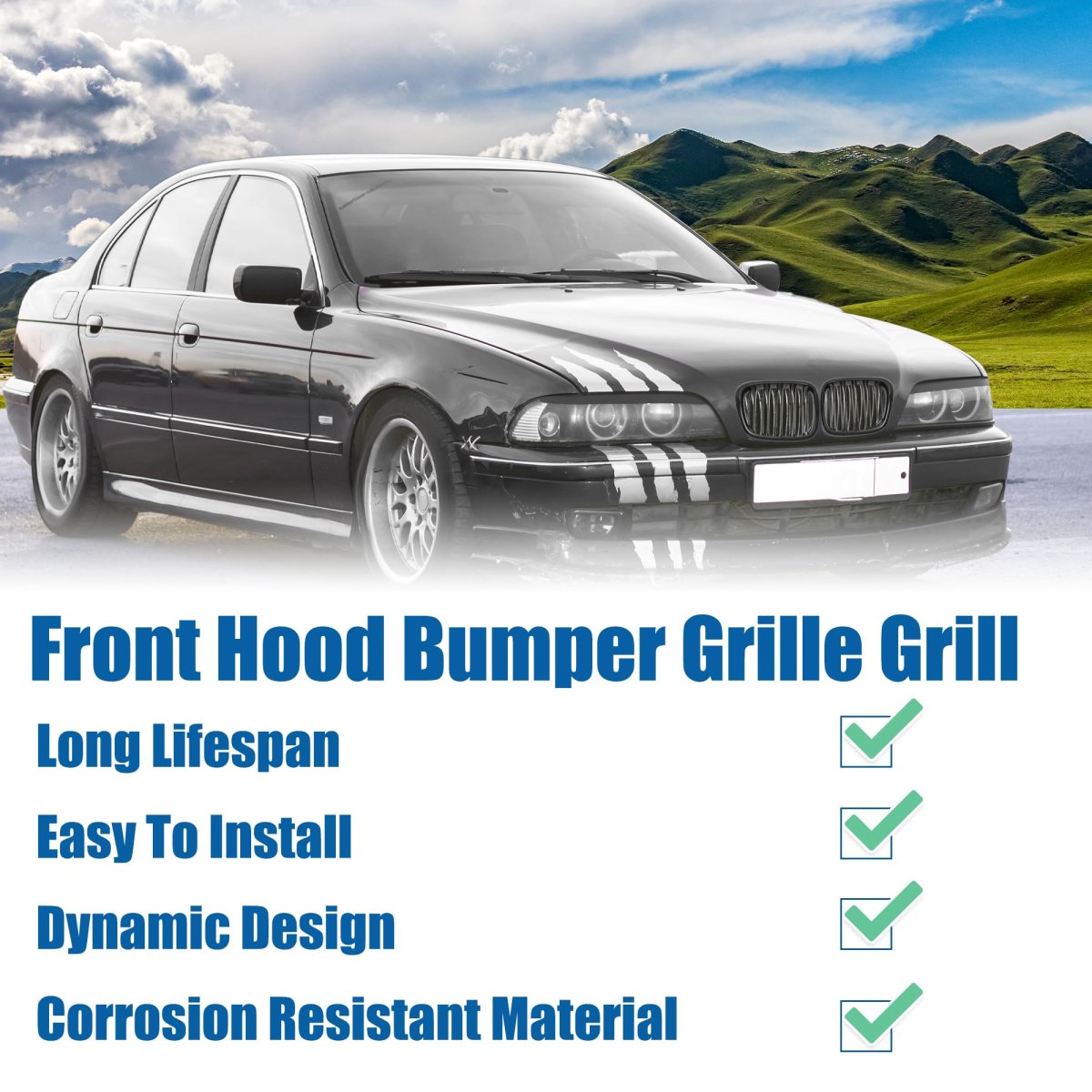 Fitment: The Front Upper Hood Bumper Grille Grill is for BMW 5 Series E39 2001-2003, for BMW 525i 2001-2003 Base 2.5L L6 - Gas, for BMW 530i 2001-2003 Base 3.0L L6 - Gas. OE Number:51137005837/51137005838. Function: The Grille made in Durable ABS which made it light and stable, Overall durable construction can withstand heat generated by engine and sun exposure.. Advantage: Provides better airflow to the radiator to help the cooling process better. Made of reliable quality ABS material. Will not affect the shutters behind the grille, brings an ultimate sportier look to your vehicle.. What in the Package: Package Comes with 1 Pair Front Hood Bumper Grille Grill.Other fine products