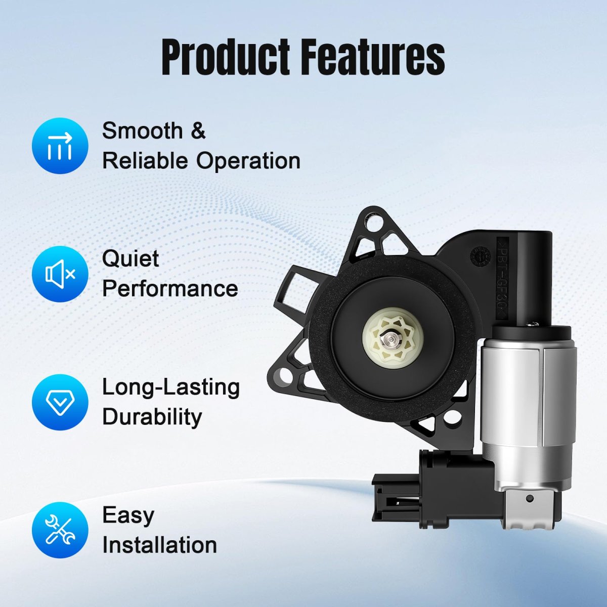 [Vehicle Fits] - Power Window Lift Motor compatible with Front Left Driver or Rear Right Passenger Side - 2004-2009 Mazda 3, 2003-2008 Mazda 6,2007-2012 Mazda CX-7 CX7; Front or Rear Left Driver Side - 2006-2015 Mazda 5,2007-2015 Mazda CX-9 CX9, 2004-2011 Mazda RX-8 Right Passenger Side. [Interchange Part Number] - 742-801 742801 GJ6A5958XF G22C5958XC D6515958XB. [Excellent Durability & Quality] - The window motor is crafted from premium materials and rigorously tested for durability. It can prevent premature wear, striping and breakage. With a long and reliable lifespan, this product meets or exceeds OEM specifications for a perfect fit. [Strong Power & Silent Operation] - Featuring a high-performance copper wire winding motor, it delivers stable powerful torque for effortless window operation even with heavy glass. The optimized gear design significantly reduces noise, ensuring a quiet and comfortable driving experience.Other fine products