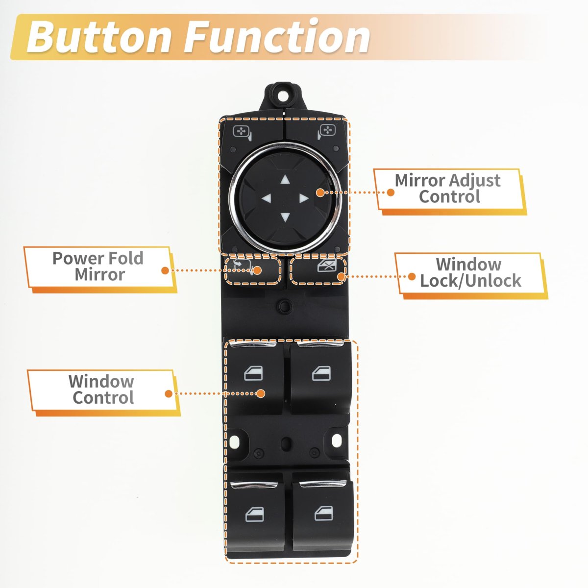Fitment:for Ford Explorer 2016-2019 Base, Limited, Platinum, Sport, XLT 2.3L L4 - Gas, 3.5L V6 - Gas, for Ford Police Interceptor for Utility 2016 Base 3.5L V6 - Gas, 3.7L V6 - Flex, 3.7L V6 - Gas, for Ford Police Interceptor for Utility 2017-2019 Base 3.5L V6 - Gas, 3.7L V6 - Flex. OE Number:GB5Z14529DA. Specification:Power window switch is used to raise or lower the windows in your vehicle. Button Function: Window Lock/Unlock, Window Control, Power Fold Mirror, Mirror Adjust Control. Product Characteristics:Replace the old window switch if it's broken, or cracked. It has a good fit, and would not break or crack easily during use. After 50,000 tests, the product has no corrosion or rust, the switch performance is good, the button are smooth and there is no sticking.There is no obvious fading when it touches water, the keys do not affect the use, and the identification symbols are not damaged. The appearance of the product is not damaged after falling.. Note:Two people working simultaneously. Press the small switch in the corresponding position of the car and the button in the corresponding position of the main switch in the driver's seat, raise it to the top and hold it for 2 seconds, then lower it to the bottom and hold it for 2 seconds, and the match is successful..Other fine products