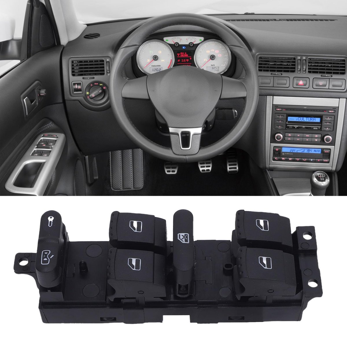 [Premium Durable Materials] Crafted with premium abs materials, this power window switch is enduring, shockproof, and suitable for use in various harsh environments.. [Effortless Window Control] The power window switch provides effortless control over your vehicle's window with just the push of a button. experience the convenience of raising and lowering the window.. [Dependable and Long-lasting] Ensures long-lasting performance, providing a dependable solution for replacing your faulty or old switch. no modifications required, saving you time and hassle during the replacement process.. [Precise Fit and Oem Replacement] This power window switch is an oe replacement for part number 18g959857a, ensuring precise fit and seamless integration with your vehicle, giving you peace of mind when using it.. [High Compatibility and Easy Installation] Replacement for seat 1m, seat toledo 1m, 1j variant, this 10 pin switch ensures high compatibility with a direct fit for easy installation..Other fine products