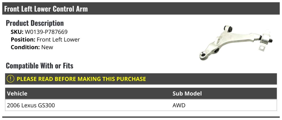 - Front Left Driver Side Lower Control Arm For 2006 Gs300 Awd