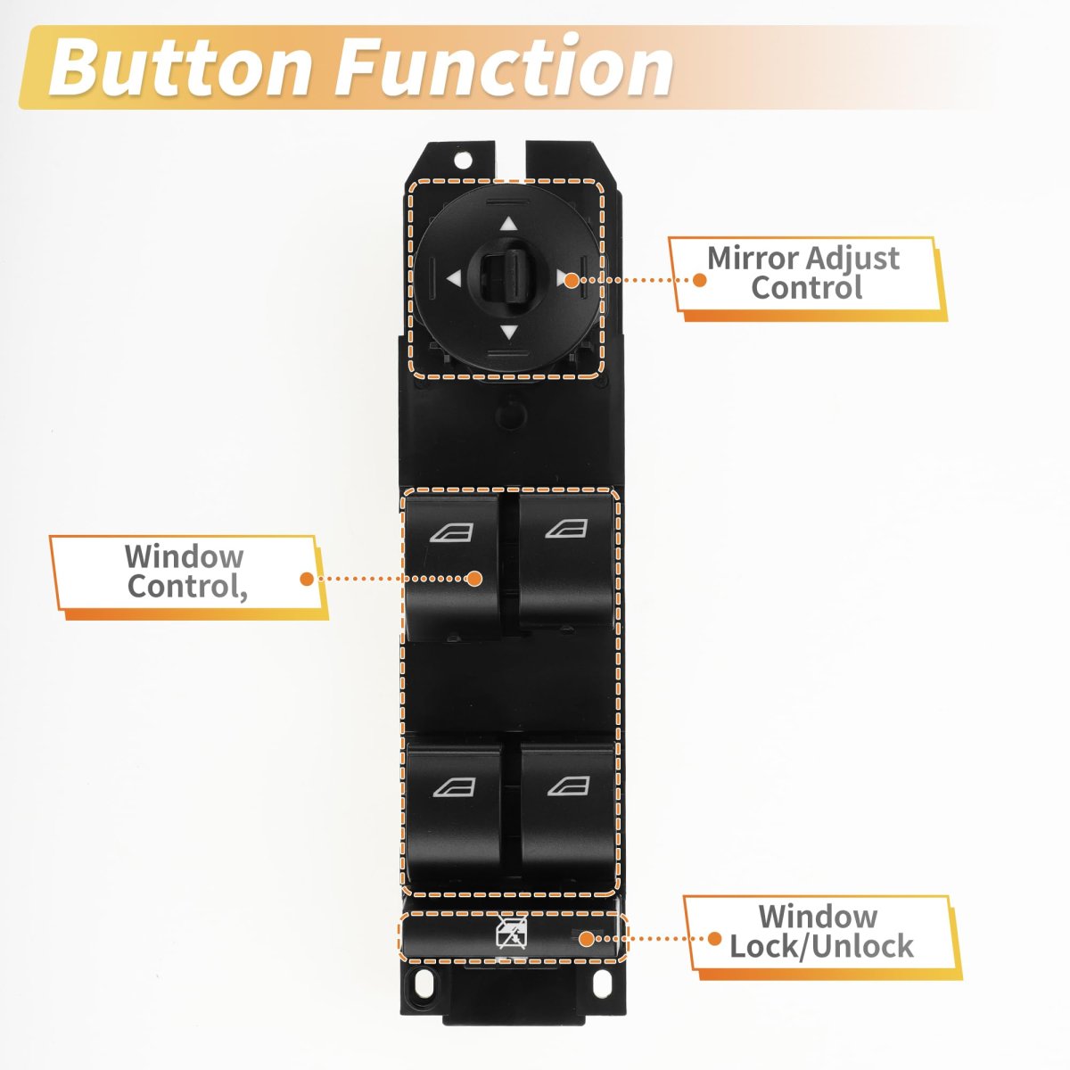 Fitment:for Ford Escape 2013 S, SE, SEL, Titanium 1.6L L4 - Gas, 2.0L L4 - Gas, 2.5L L4 - Gas, for Ford Escape 2014-2016 S, SE, Titanium 1.6L L4 - Gas, 2.0L L4 - Gas, 2.5L L4 - Gas, for Ford Escape 2017 S, SE, Titanium 1.5L L4 - Gas, 2.0L L4 - Gas, 2.5L L4 - Gas, for Ford Escape 2018 2019 S, SE, SEL, Titanium 1.5L L4 - Gas, 2.0L L4 - Gas, 2.5L L4 - Gas, for Ford Focus 2012 Electric, S, SE, SEL, Titanium 2.0L L4 - Flex, 2.0L L4 - Gas, Electric. OE Number:BM5Z14529H. Specification:Power window switch is used to raise or lower the windows in your vehicle. Button Function: Window Lock/Unlock, Window Control, Mirror Adjust Control. Product Characteristics:Replace the old window switch if it's broken, or cracked. It has a good fit, and would not break or crack easily during use. After 50,000 tests, the product has no corrosion or rust, the switch performance is good, the button are smooth and there is no sticking.There is no obvious fading when it touches water, the keys do not affect the use, and the identification symbols are not damaged. The appearance of the product is not damaged after falling.. Package List:1 Pc Car Power Window Switch.Other fine products