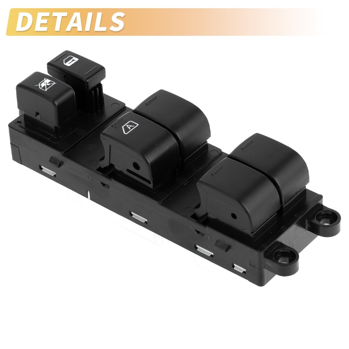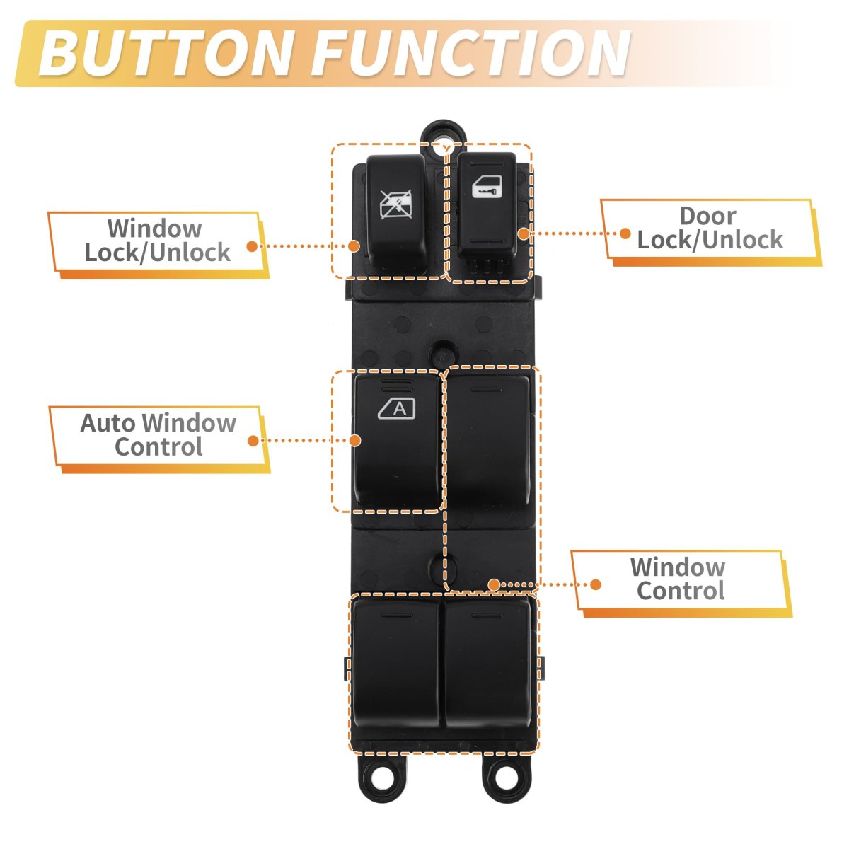Fitment: for Nissan Pathfinder LE 6 Cyl 4.0L 2005-2007, for Nissan Pathfinder S 6 Cyl 4.0L 2006-2007, for Nissan Pathfinder SE 6 Cyl 4.0L 2005-2007, for Nissan Pathfinder SE Off-Road 6 Cyl 4.0L 2005-2007, for Nissan Pathfinder XE 6 Cyl 4.0L 2005, for Nissan Sentra 2007-2012. OE Number:254019W100; Replace the old window switch if it's broken, or cracked. Made of plastic and metal, durable for your car.. Function: Power window switch is used to raise or lower the windows in your vehicle. Button Function: Door Lock/Unlock, Window Lock/Unlock, Auto Window Control, Window Control.Other fine products