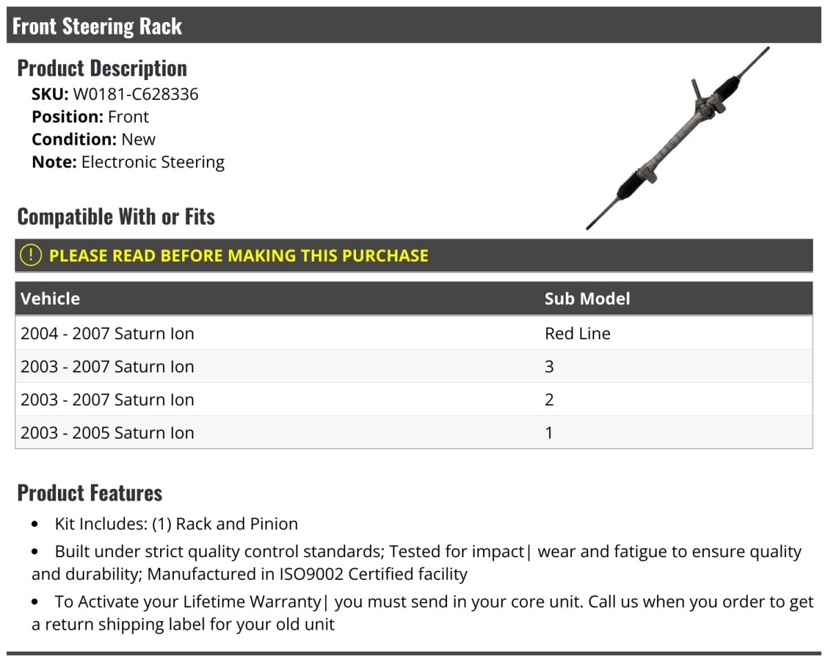 - Front Power Steering Rack For 2003-2007 Saturn Ion Electronic