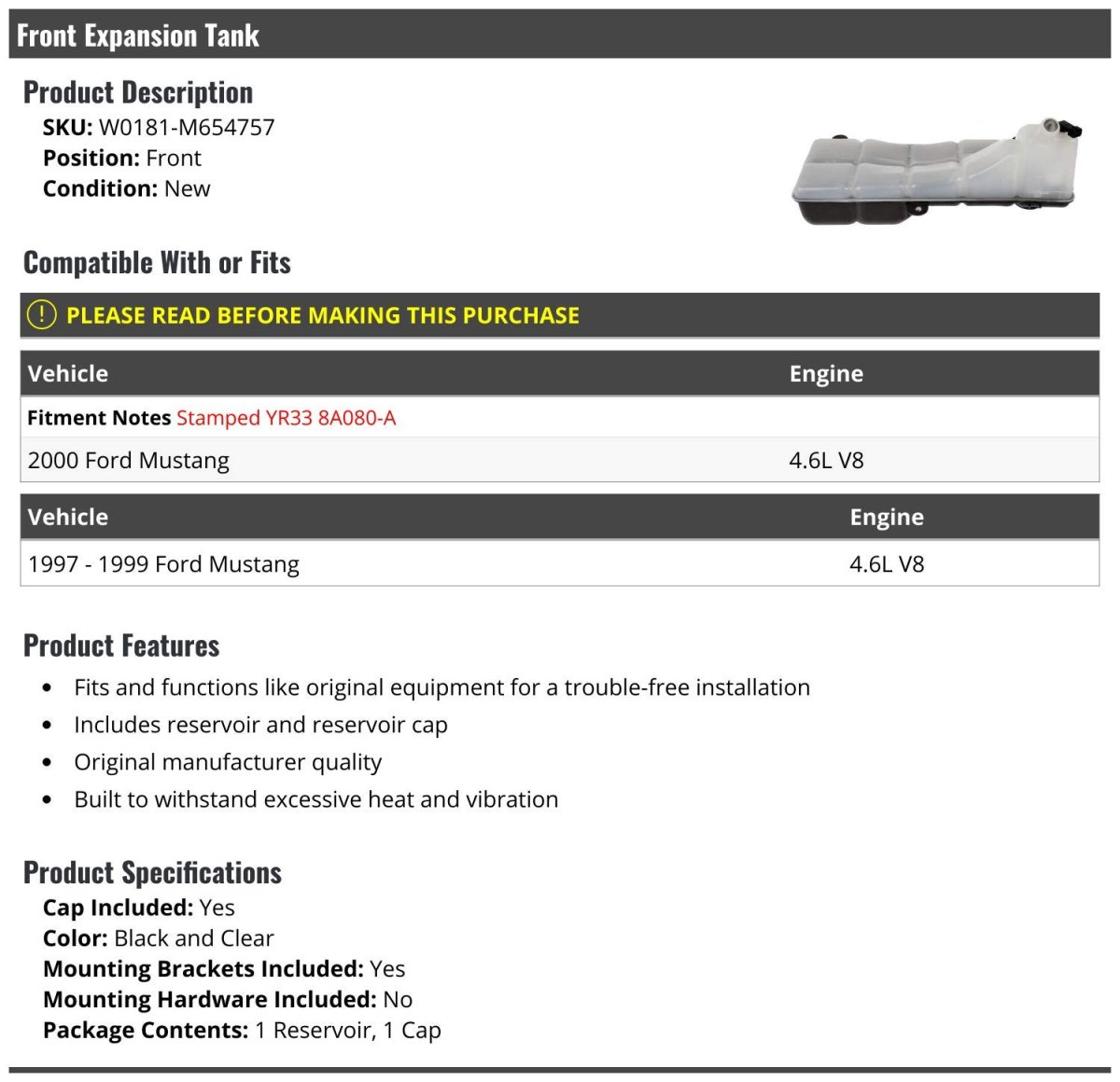 - Front Radiator Coolant Overflow Tank Reservoir For 1997-2000 Ford Mustang 4 6l V8