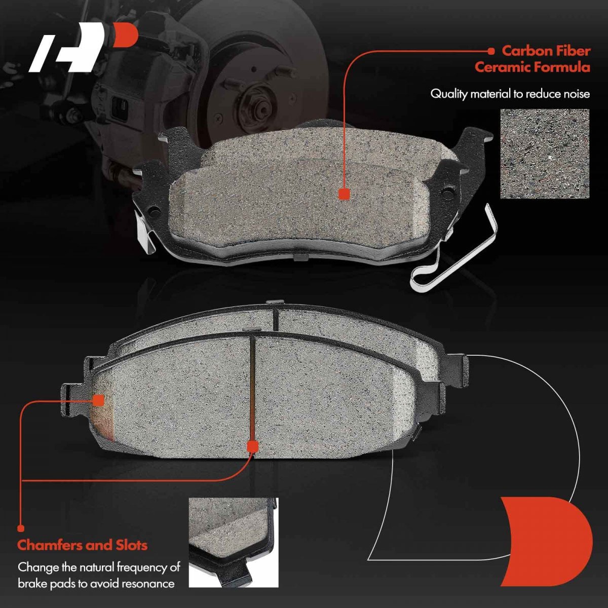 [Perfect Fitment]: Compatible with Jeep Commander 2006-2010, Grand Cherokee 2005-2010 (Excluding SRT-8 Model)---Front and Rear, Left and Right, Driver and Passenger Side. [Specification]: Brake pads are manufactured in a clean room using MTF602 carbon ceramic formula, which excels in low dust and noise reduction, and meets Leaf Mark certification with a copper content of less than 5%. 72-hour salt spray test, which can excel in meeting the challenges of extreme conditions.. [Package Details]: 8x Disc Ceramic Brake Pads + Brake Lubricant (High-temperature Grease) + Installation Hardware. Complete kit purchase for more time-saving and peace of mind..Other fine products