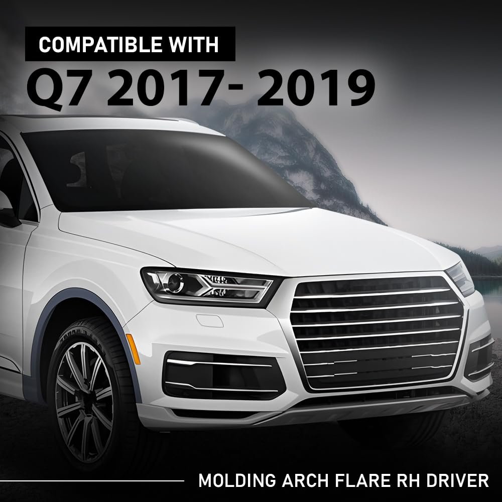 Compatibility: Fender Flare Compatible with Audi Q7 2017 2018 2019.. OE Standard: Meets the Original Equipment (OE) standards, ensuring replacement fit just like the original. Interchange part number: AU853718A, 4M0853718AGRU, 4M0-853-718-A-GRU, 4M0-853-718-AGRU, 4M0853718A GRU.. Excellent Material: Made of durable PP materials that are resistant to UV rays, and harsh weather conditions, ensuring long-lasting performance and maintaining its appearance.. Robust & Durable: Give your vehicle the appearance of an upmarket trim level with Fender Flares. Effectively protects vehicle and tires from mud, scratches, sand and other external damage.. Effective Protection: Our fender flares offer excellent water resistance, preventing rain and mud from seeping in to avoid body corrosion. Once installed, they provide comprehensive protection for the vehicle body..Other fine products