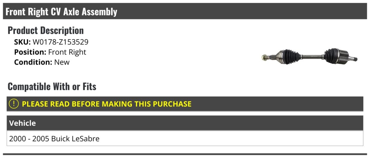- Front Right Passenger Side Cv Axle Assembly For 2000-2005 Buick Lesabre
