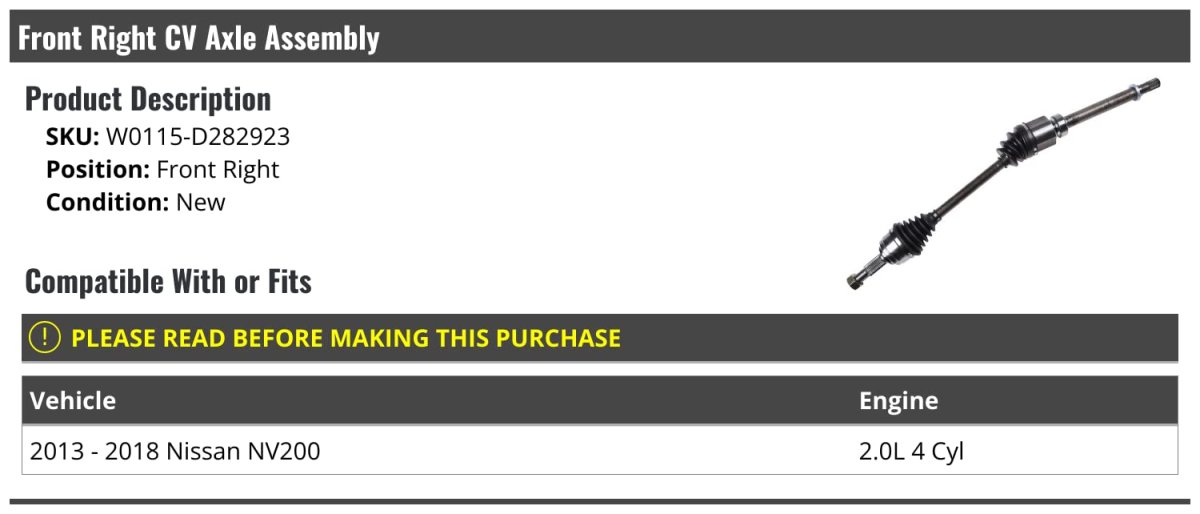 - Front Right Passenger Side Cv Axle Assembly For 2013-2018 Nissan Nv200 2 0l 4-cylinder