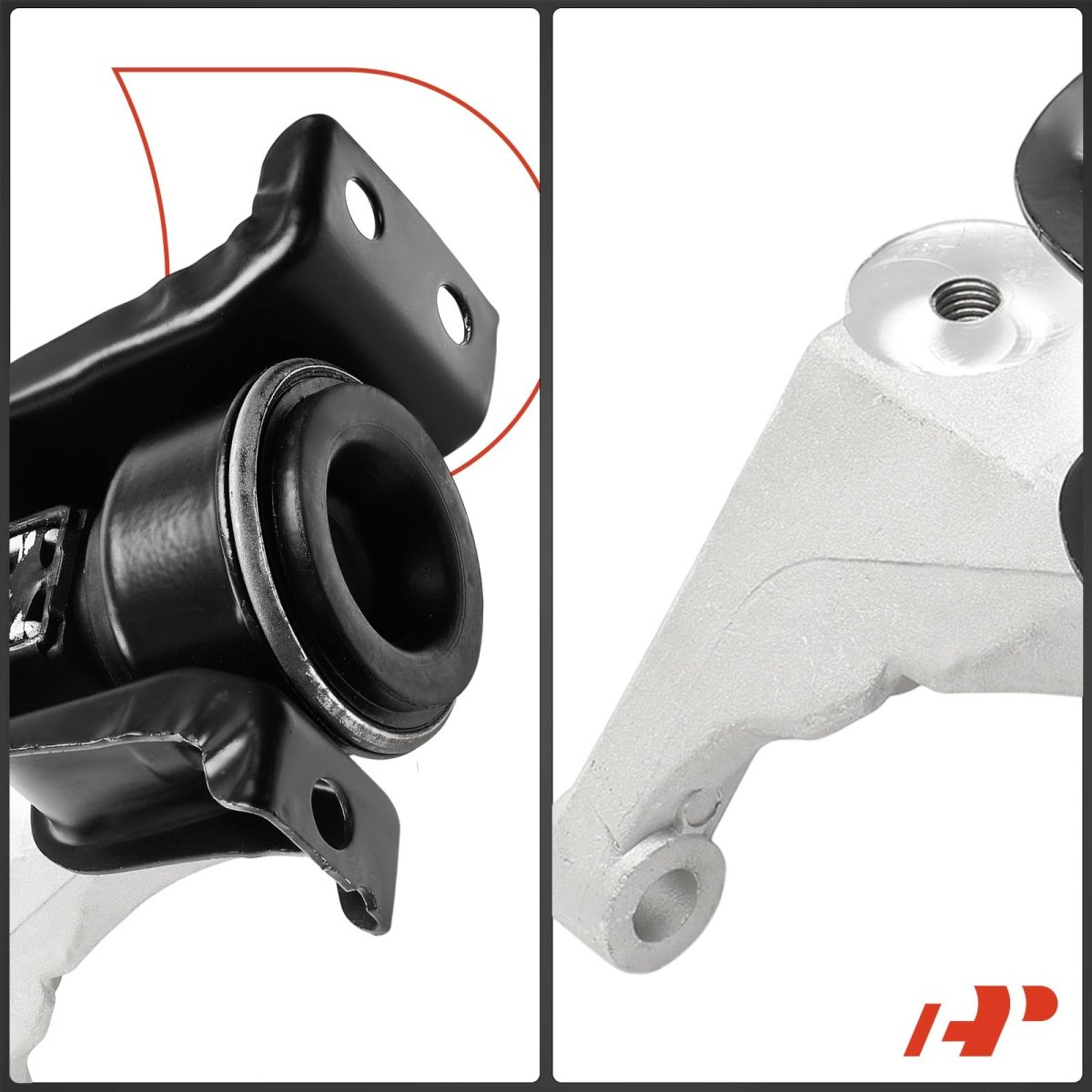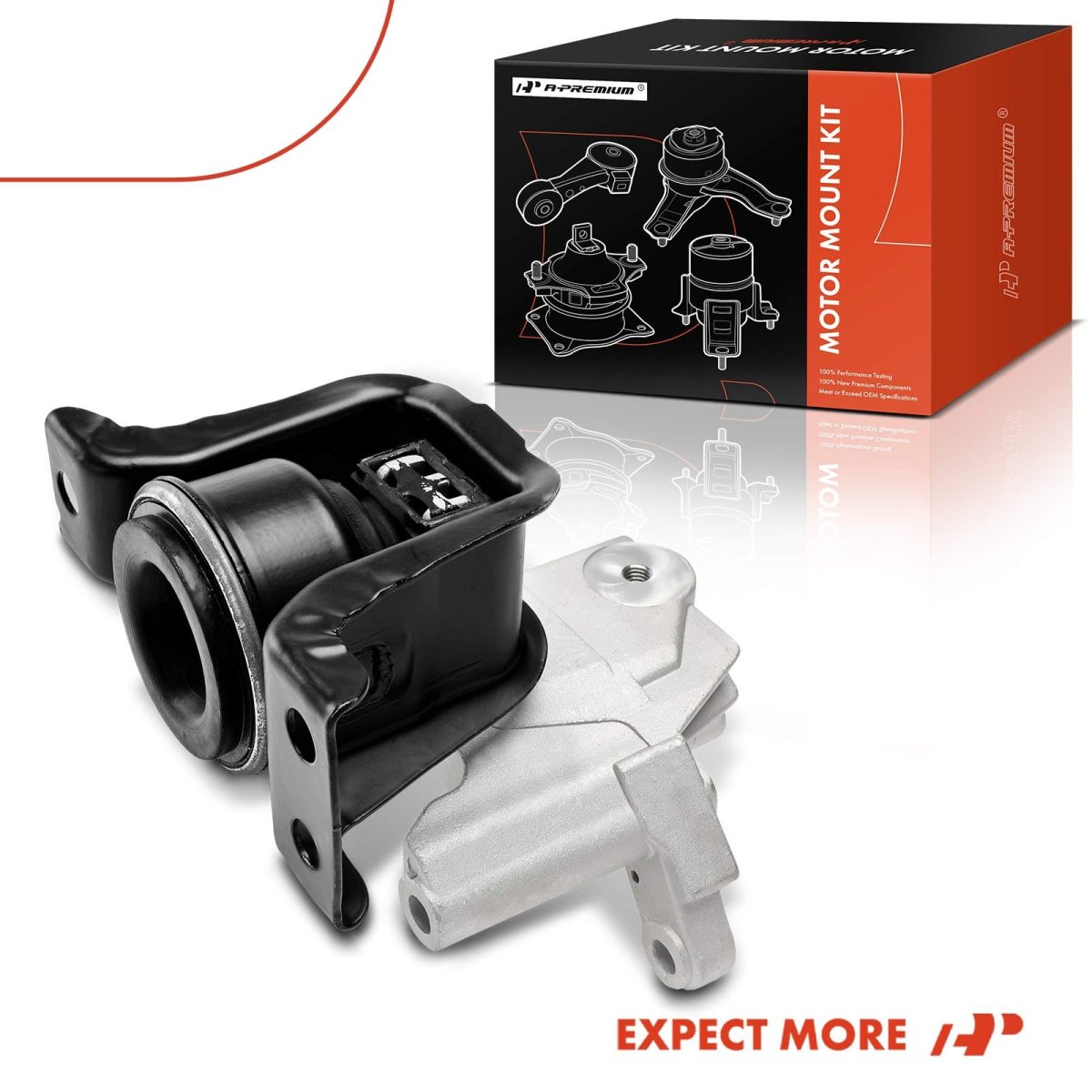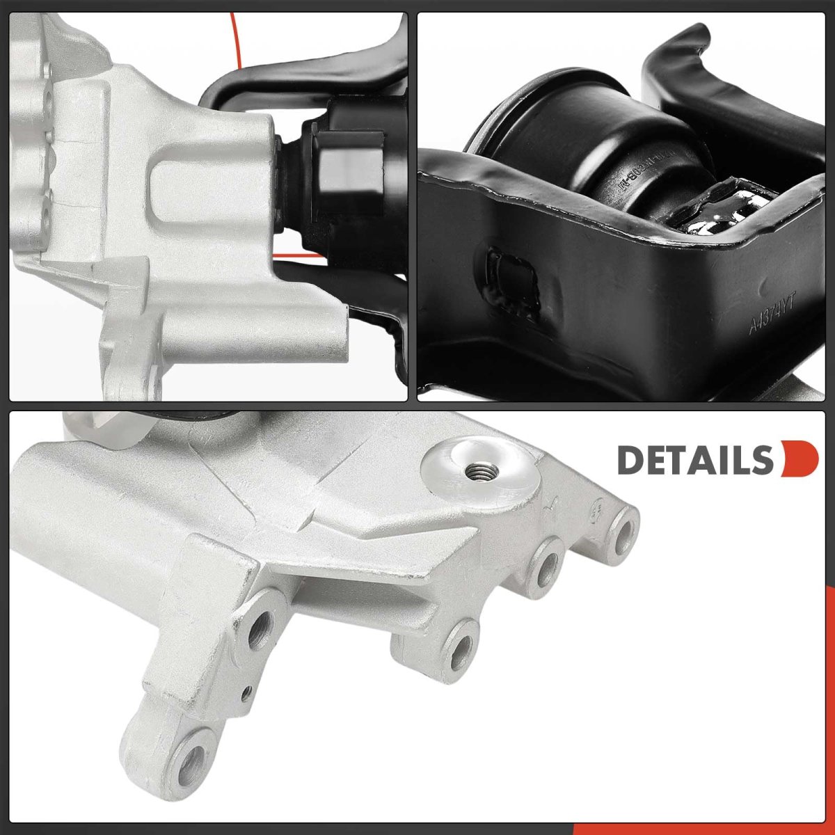 [Vehicle Fitment]: Compatible with Nissan Sentra 2014-2019 L4 1.8L --- 1st Design; with Steel Housing. [Reference Number]: A4374, 112109AM0A. [Specifications]: Location: Front Right Passenger Side; Type: Engine Motor Mount; Material: Aluminum, Steel, Rubber; Mounting Hole Quantity: 9; Stud Quantity: 0; Quantity Sold: One Piece. [Advantages]: A-Premium engine mount supports the engine, absorbs vibrations and reduces noise effectively for a smoother and more comfortable driving. Made of outstanding materials, designed for the precise fit and long-lasting performance.Other fine products