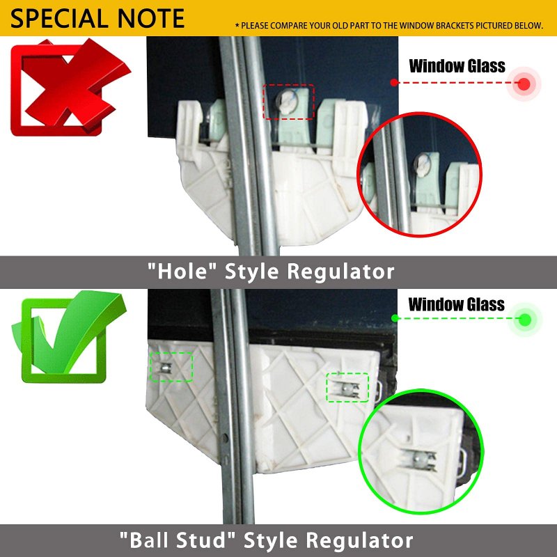 YHTAUTO Affordable and Prime Window Regulator, Directly Fit. Fits Jeep Liberty 2002-2006 Sport Utility---To 02/25/2006; Ball Stud Style, Regulator Attaches To Metal Liftplate with Spring Clip. Location: Front Right, Passenger Side; Comes with Motor. Reference Number: 55360030AM, 55360030AB, 55360030AG, 55360030AH, 55360030AJ, 68059645AA, 741-527.Other fine products