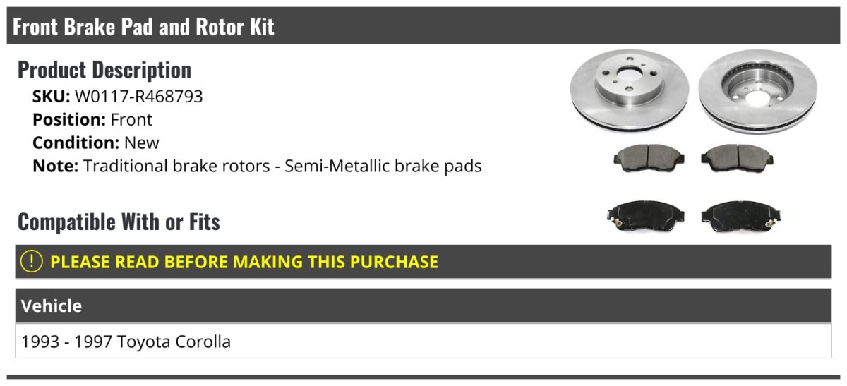 - Front Semi Metallic Brake Pads And Rotor Kit For 1993-1997 Toyota Corolla