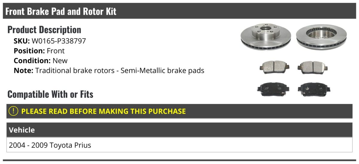 - Front Semi Metallic Brake Pads And Rotor Kit For 2004-2009 Toyota Prius