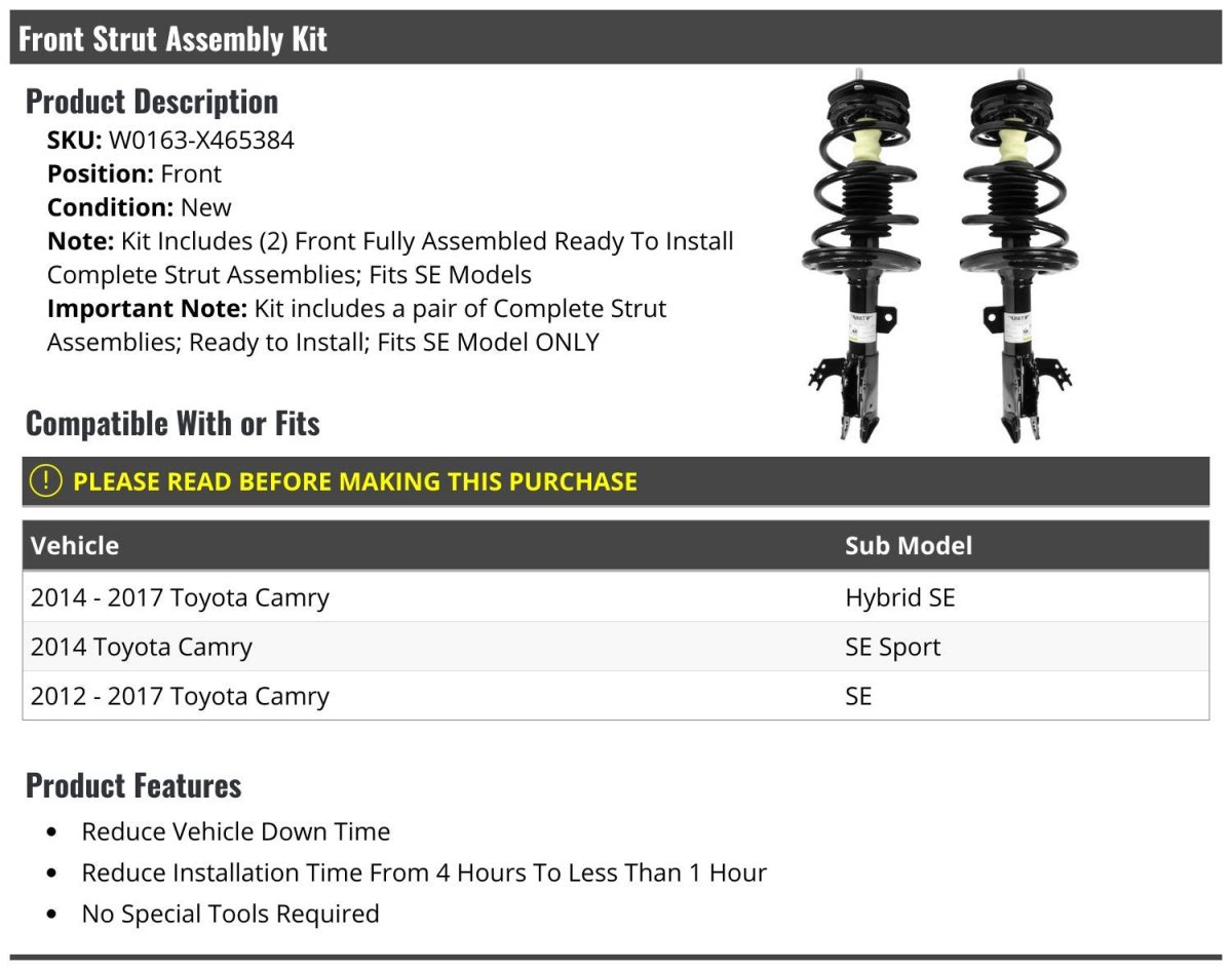 - Front Strut And Coil Spring Assembly 2 Piece Kit For 2012-2017 Toyota Camry