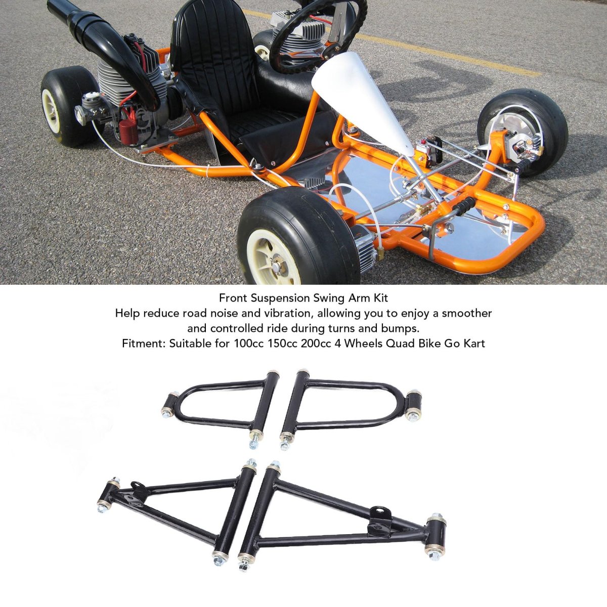 [Enhanced Ride Quality] Experience a smoother ride with reduced noise and vibrations for improved control and comfort on rough terrains.. [Durable and Rustproof] Crafted from steel for longevity and wear protection, ensuring stability under rigorous use.. [Easy Installation] Dependable replacements for original suspension kits, offering seamless upgrades and improved performance.. [Wide Vehicle Compatibility] Front suspension swing arm kit fits 110cc, , and atvs, and go karts for versatile use.. [Robust Stability] High strength steel design enhances vehicle stability for off-roading or urban landscapes..Other fine products