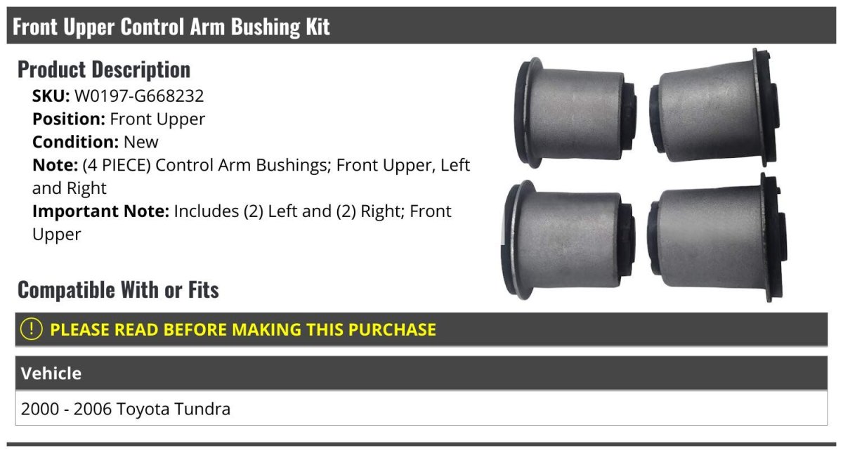 - Front Upper Control Arm Bushing Kit Set Of 2 Left And Right For 2000-2006 Toyota Tundra