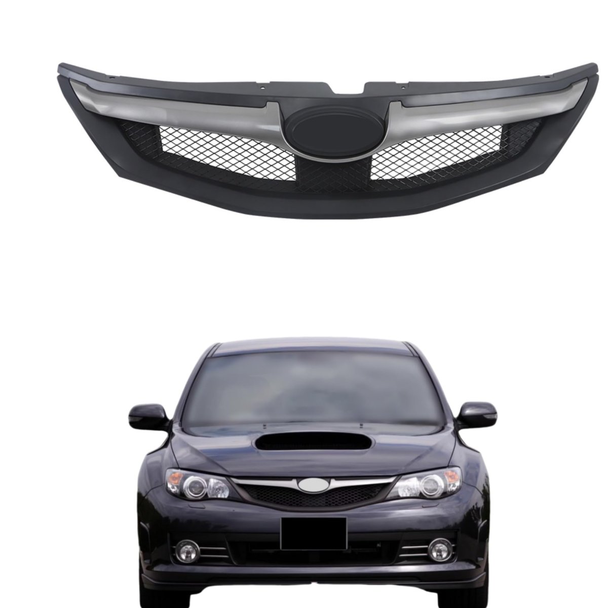 - Front Upper Grille Black With Silver Molding Trim Mesh Replacement For Impreza Wrx Sti 2008 2009 2010