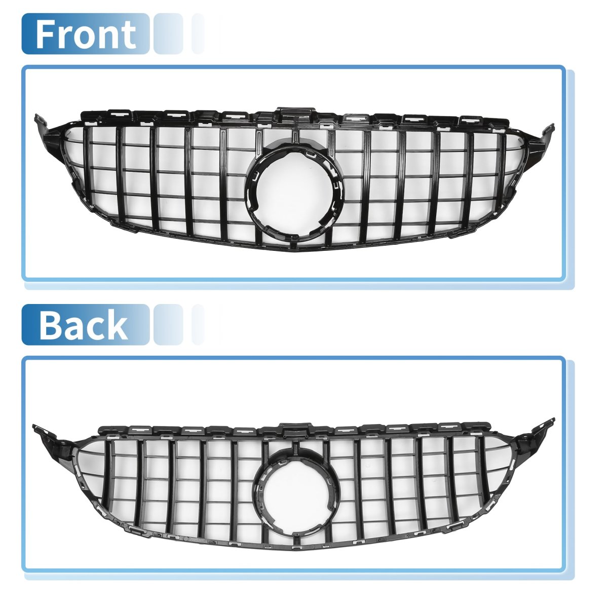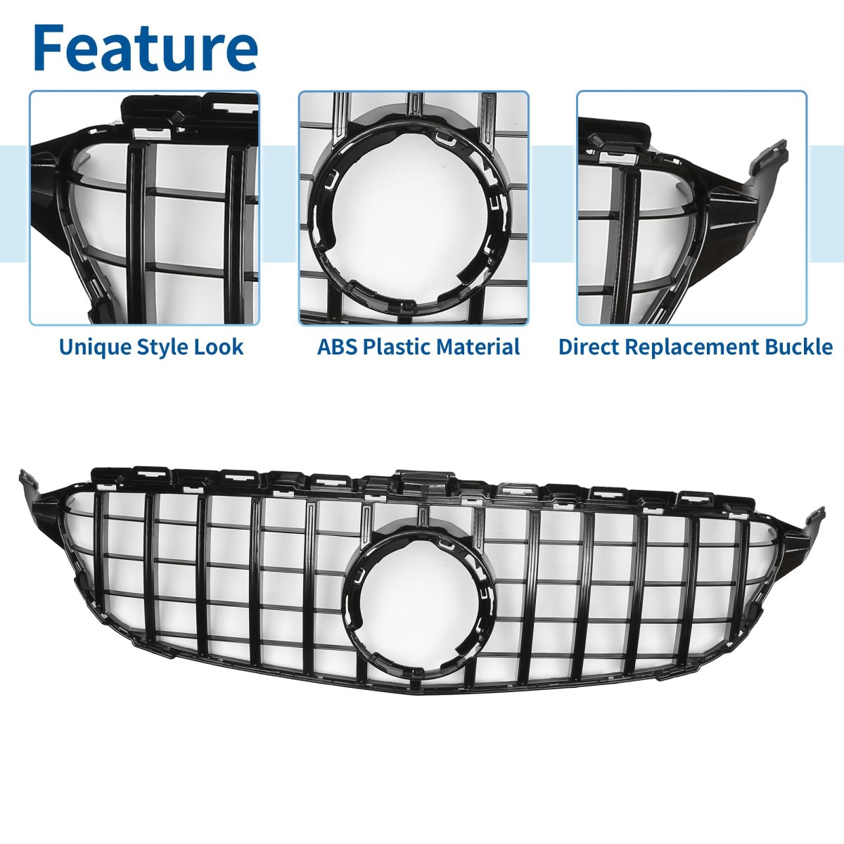 Fitment: The front hood bumper grille is fit for Mercedes-Benz C180 2013-2016, for Mercedes-Benz C180 2018-2019, for Mercedes-Benz C200 2013-2016, for Mercedes-Benz C200 2018-2019, for Mercedes-Benz C250 2013-2016, for Mercedes-Benz C250 2018, for Mercedes-Benz C300 2013-2019, for Mercedes-Benz C350 2013-2015, for Mercedes-Benz C400 2015, for Mercedes-Benz C450 2016, for Mercedes-Benz C-Class W205 2015-2018. Features: Front hood grille grill can directly replace old or worn car grilles. Improving your car grade, upgrade your vehicle's exterior styling for a luxurious look that will make your car unique.. Advantage: The front bumper grille grill is made in Durable ABS plastic which makes it light and stable. Overall durable construction can withstand heat generated by engine and sun exposure. This material is resistant to corrosion, fading, and impact, ensuring your grille will look great for years to come.. Function: The gap after installation is small. The hood bumper grill provides better airflow to the radiator to help the cooling process better. Will not affect the shutters behind the car grille..Other fine products