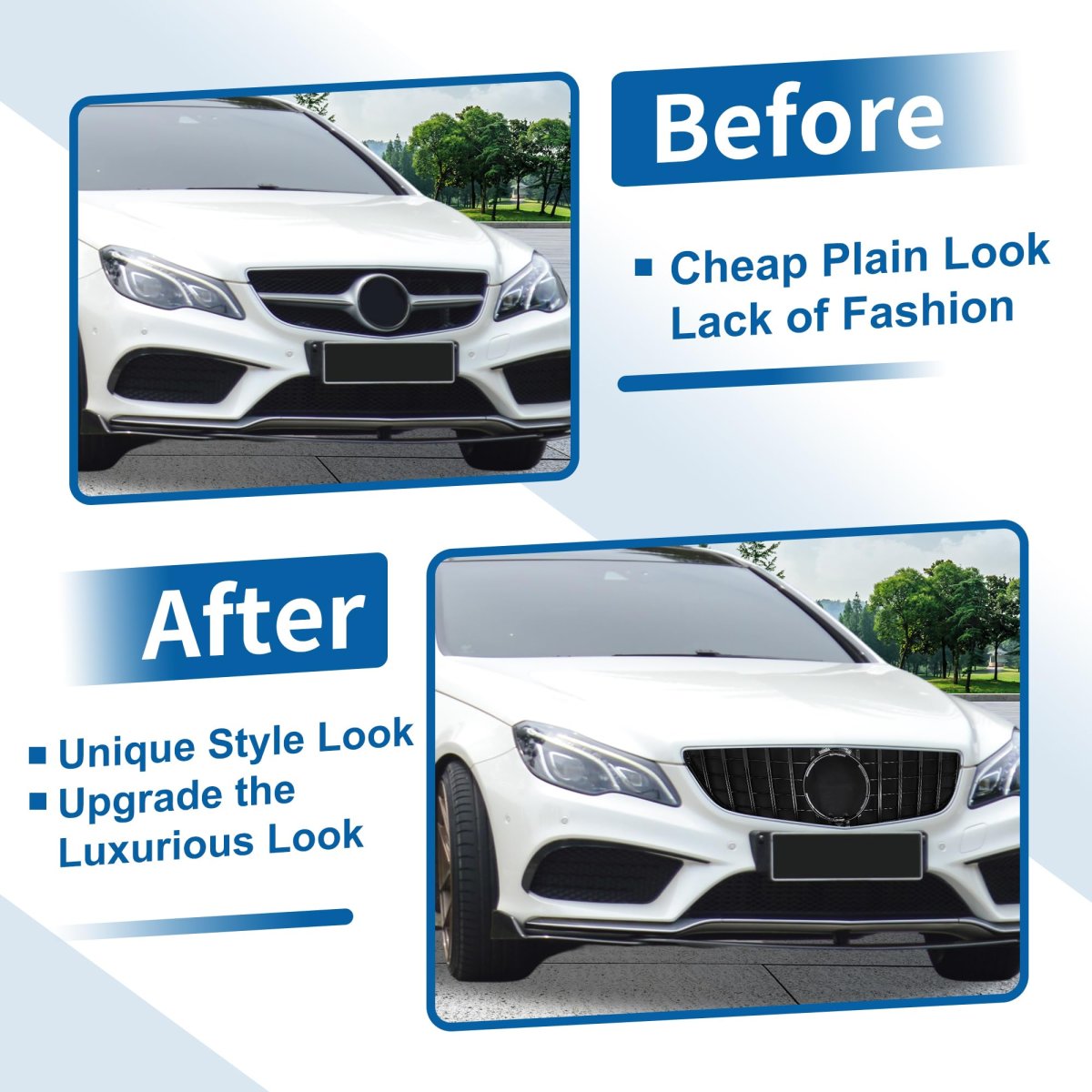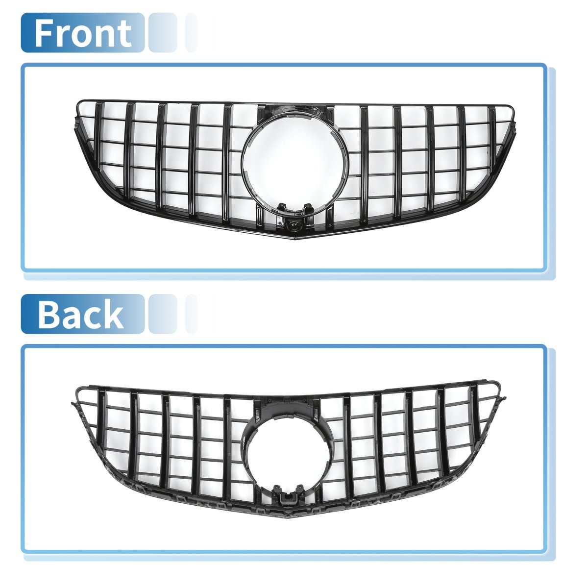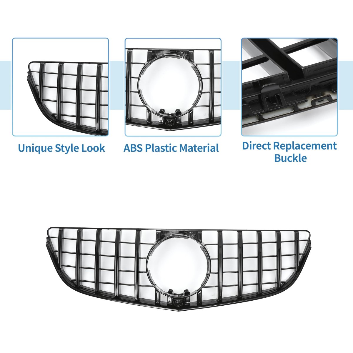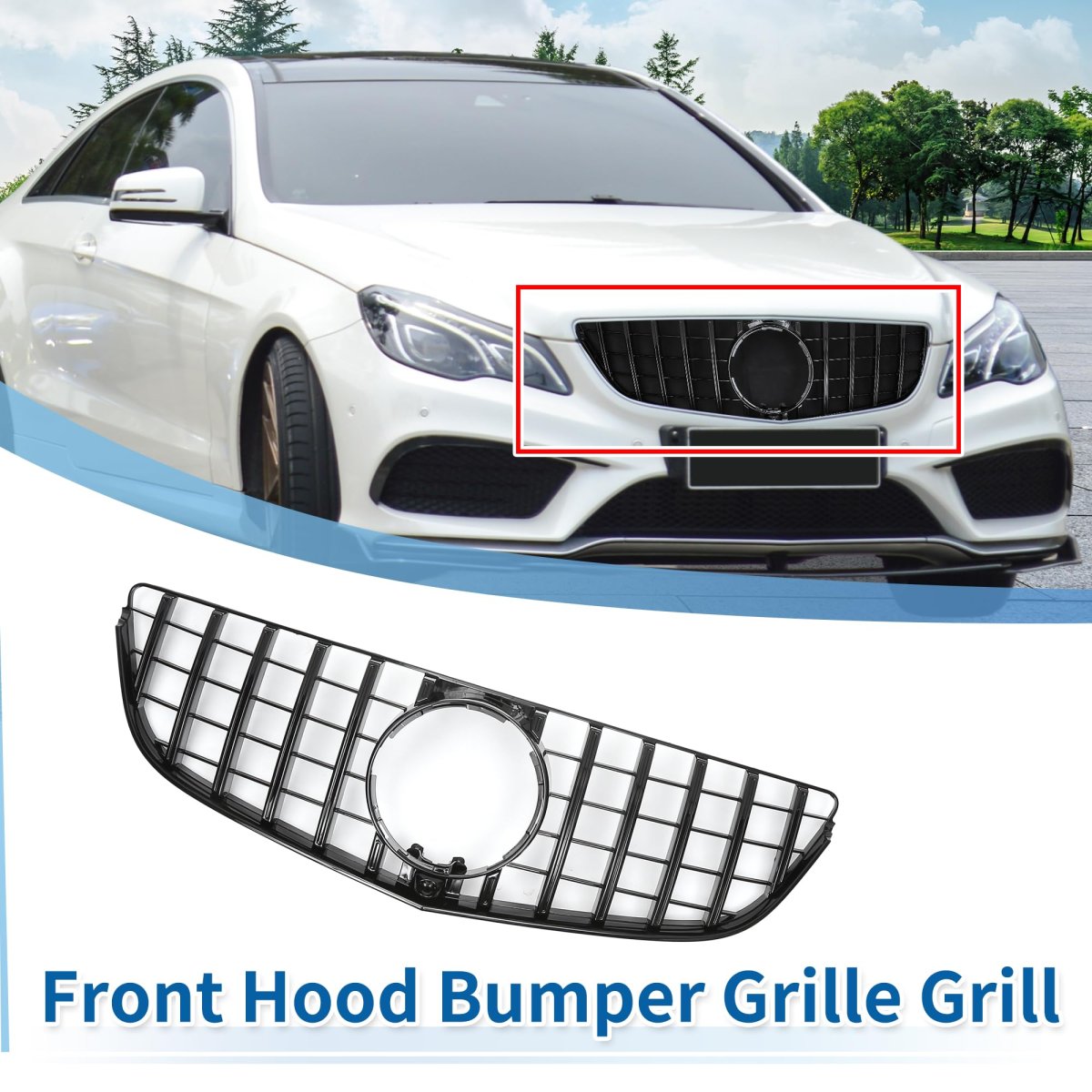 Fitment: The front hood bumper grille is fit for Mercedes-Benz E200 2014-2017, for Mercedes-Benz E250 2014-2017, for Mercedes-Benz E300 2014-2017, for Mercedes-Benz E350 2014-2016, for Mercedes-Benz E400 2014-2017, for Mercedes-Benz E500 2014-2017, for Mercedes-Benz E550 2014-2017. Features: Front hood grille grill can directly replace old or worn car grilles. Improving your car grade, upgrade your vehicle's exterior styling for a luxurious look that will make your car unique.. Advantage: The front bumper grille grill is made in Durable ABS plastic which makes it light and stable. Overall durable construction can withstand heat generated by engine and sun exposure. This material is resistant to corrosion, fading, and impact, ensuring your grille will look great for years to come.. Function: The gap after installation is small. The hood bumper grill provides better airflow to the radiator to help the cooling process better. Will not affect the shutters behind the car grille..Other fine products