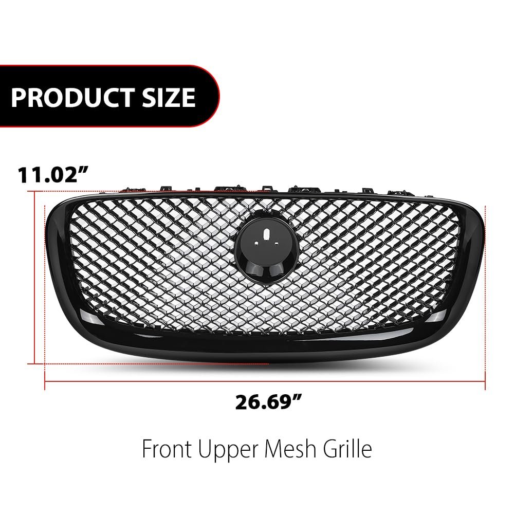 COMPATIBILITY: Front Upper Mesh Grille Gloss Black W/ Emblem Compatible with Jaguar XF XFR Sedan 4-Door 2012 2013 2014 2015. Premium Material: Front Upper Mesh Grille W/ Emblem is Made of sturdy ABS material, designed to withstand various adverse weather conditions, it will not easily crack or warp, and is long-lasting. Function: The grille is designed to enhance airflow to the engine, promoting better cooling and performance to help cool down your radiator and engine. Excellent Workmanship: Excellent design enhances aesthetics, brings a different appearance to your vehicle thats great for show use or to replace old and worn parts. About Installation: The design of this grille matches the installation and appearance of the original Part on the specified vehicle, no modification required,direct installation..Other fine products