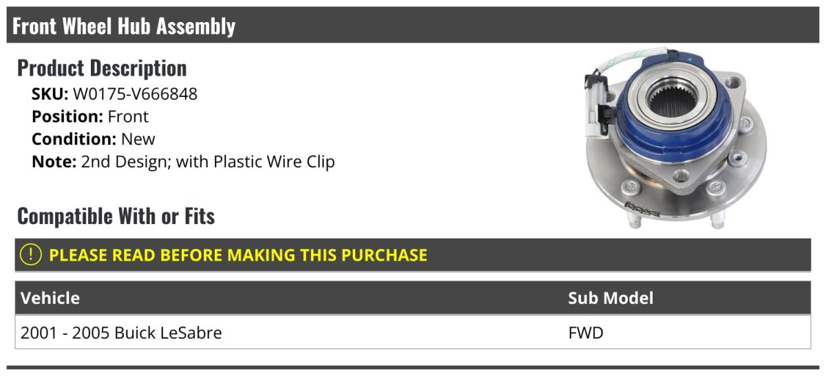 - Front Wheel Bearing Hub Assembly 2nd Design For 2001-2005 Buick Lesabre Fwd