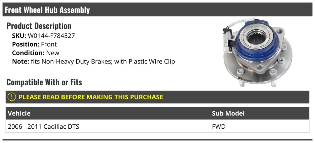- Front Wheel Bearing Hub Assembly For 2006-2011 Cadillac Dts Fwd Without Heavy Duty Brakes