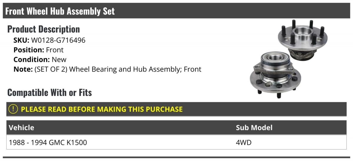 - Front Wheel Bearing Hub Assembly Set Of 2 Compatible With 1988-1994 Gmc K1500 4wd