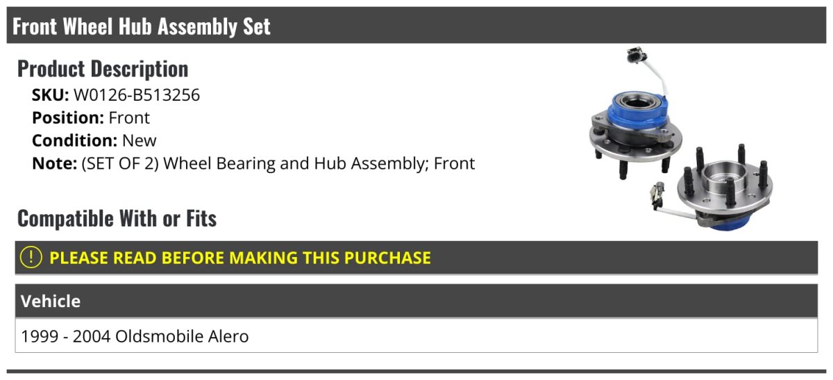 - Front Wheel Bearing Hub Assembly Set Of 2 For 1999-2004 Oldsmobile Alero