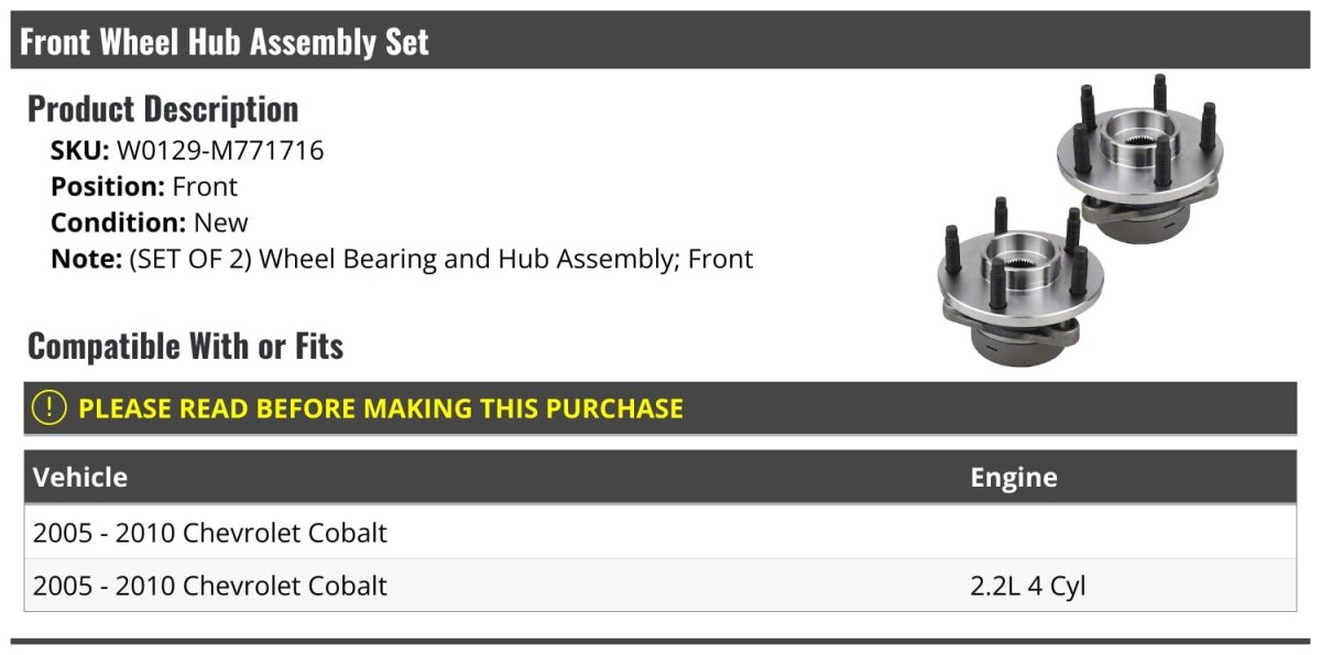 - Front Wheel Bearing Hub Assembly Set Of 2 For 2005-2010 Chevy Cobalt