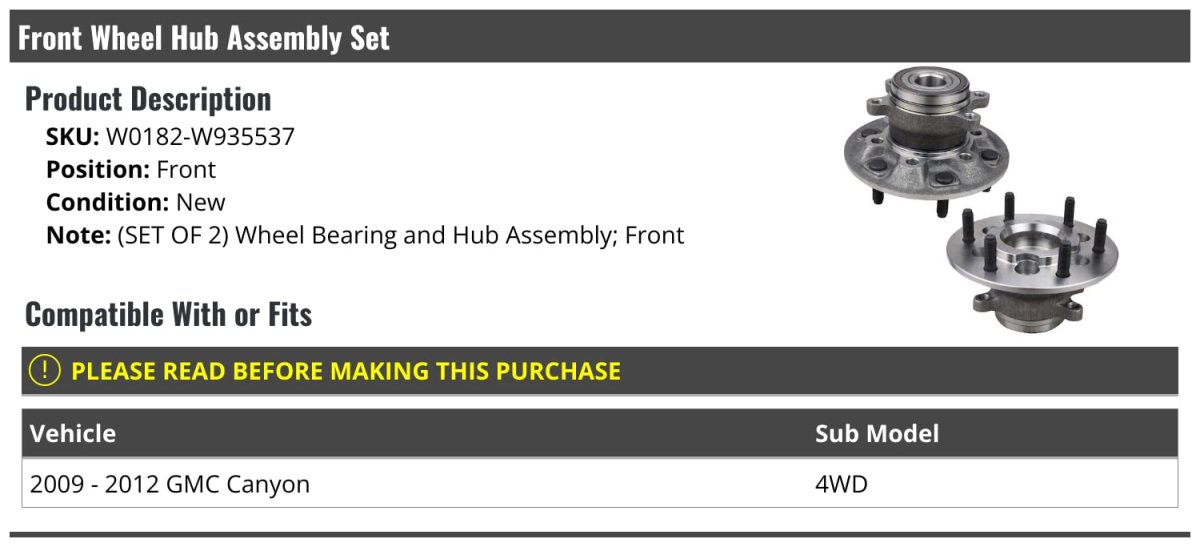 - Front Wheel Bearing Hub Assembly Set Of 2 For 2009-2012 Gmc Canyon 4wd