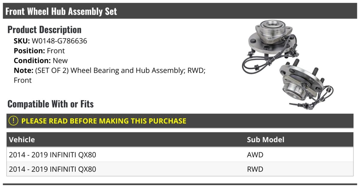 - Front Wheel Bearing Hub Assembly Set Of 2 For 2014-2019 Infiniti Qx80 Awd Rwd