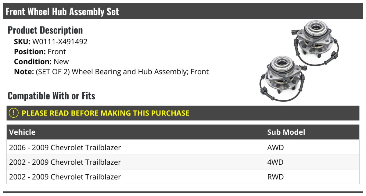 - Front Wheel Hub And Bearing Assembly Set Of 2 For 2002-2009 Chevy Trailblazer