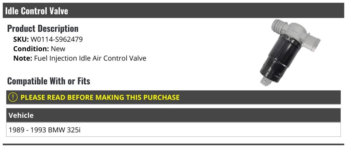 - Fuel Injection Idle Air Control Valve For 1989-1993 Bmw 325i