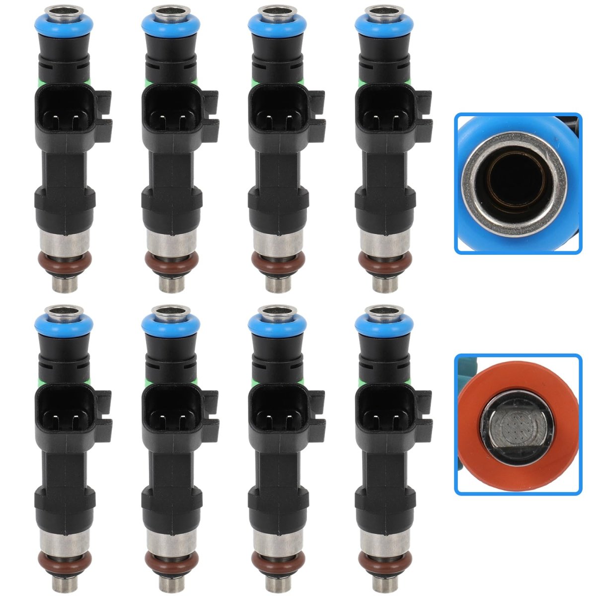 COMPATIBLE VEHICLE:2021-2024 for Ford for F-150. FEATURES: Reference number: FJ1552, ML3Z9F593C, ML3Z-9F593-C; Fuel Type: Gas, Terminal Quantity: 2, O-Rings Included: Yes, Injector Design: Metal composite plastic, quantity:8 Fuel Injectors. FAULT PERFORMANCE: may manifest as engine jitter, power loss, increased fuel consumption and other symptoms. The main causes of injector failure are blockage, leakage, poor atomization, etc., which may lead to poor fuel supply and affect engine performance. Regularly cleaning the injector, using high-quality fuel, and paying attention to daily maintenance can help prevent and solve injector failures.. QUALITY CONTROL: The use of wear-resistant stainless steel materials and silicone sealing rings enhances the sealing effect, durability, and stability of the oil nozzle. High temperature resistance, better corrosion and wear resistance..Other fine products