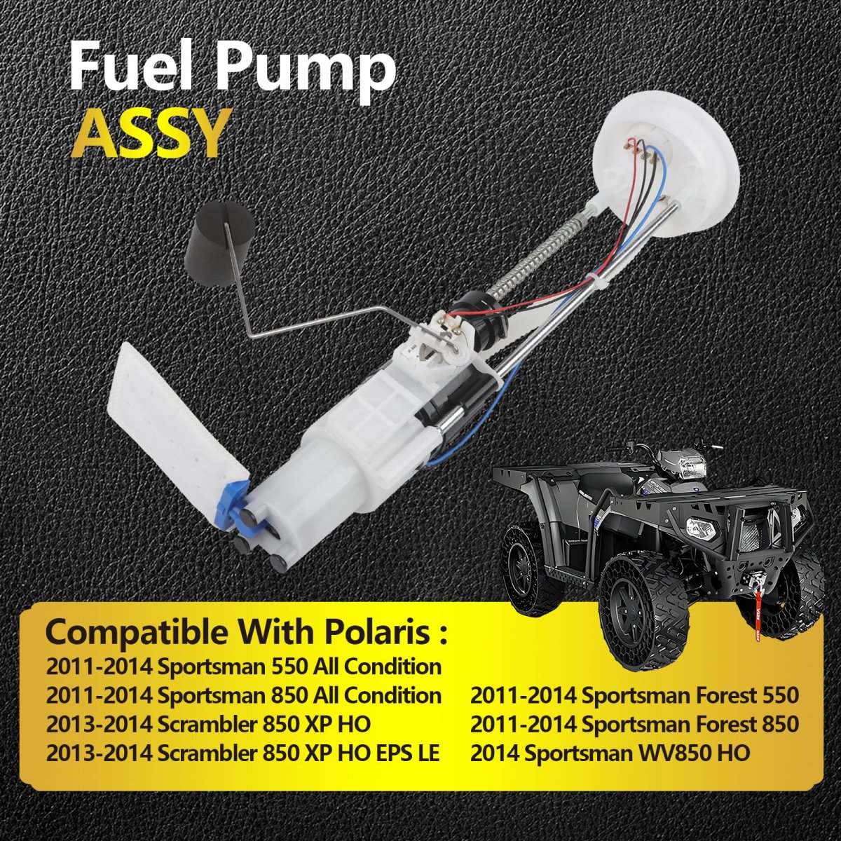 Fit forSportsman 550 2011-2014 All Condition Sportsman 850 2011-2014 All Condition 2013-2014 Scrambler 850 XP HO 2013-2014 Scrambler 850 XP HO EPS LE Sportsman Forest 550 2011-2014 Sportsman Forest 850 2011-2014 2014 Sportsman WV850 HO. AdvantageThe Fuel Pump Module Includes All Necessary Parts, Filter Screen, Pressure Regulator, You Can Install It Directly(Refer to the instruction manual for installation steps). High PerformanceBecause our product is aimed at the after-sales market, our product has been uniquely designed by engineers to make your old ATV power as if it were newly purchased after installation, It will bring you reliability and endless fun for Cross-Country Travel.. After-Sales Service24-hour service, free refund for quality issues within one year, Buy with Confidence!.Other fine products