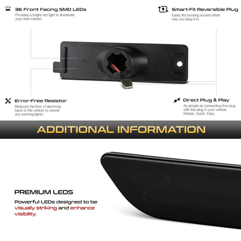 [Package Content] - Include Driver and Passenger Side Complete Set (2-Pieces) Pair In Box; You only need to add 1 quantity to cart. [Premium LED Technology] - Designed with Powerful LEDs to be Visually Striking and Enhance Visibility. [Fully Plug & Play] - No Re-Wiring or Modification to Factory Harness Needed. [Cool Smoked Lens] - Intended For Car Show or Off-Road Use Only.Other fine products